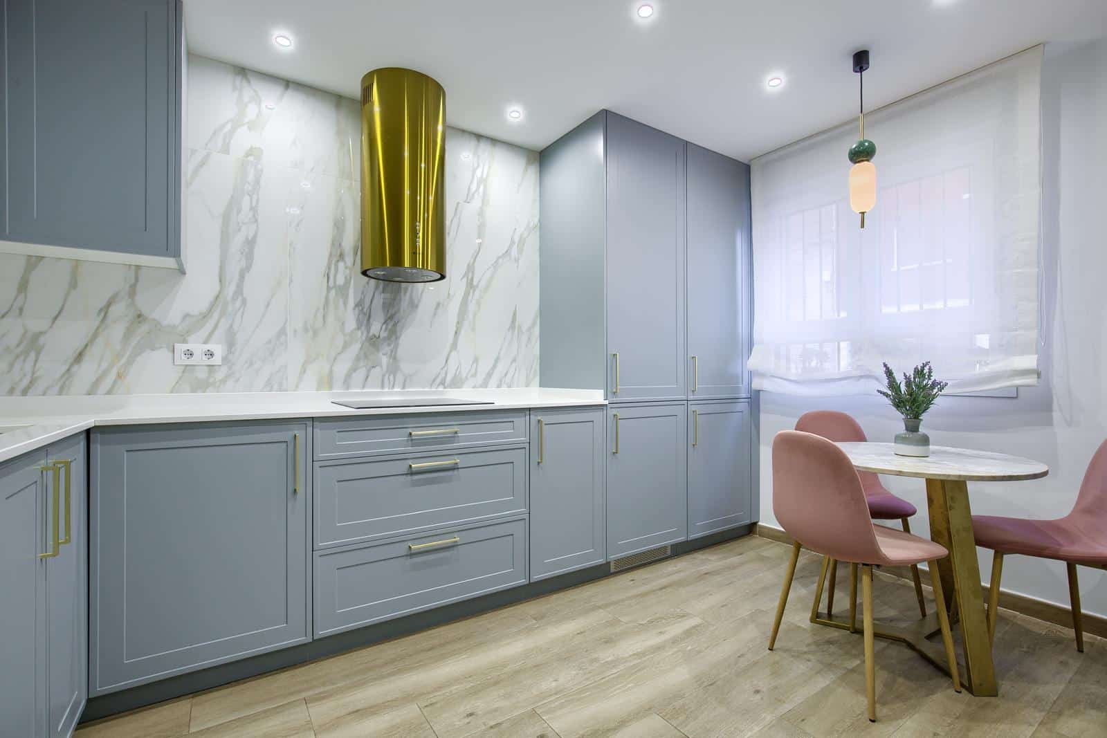 - Tiradores dorados: los tiradores dorados añaden un toque de lujo y distinción a los muebles de cocina. Su acabado brillante contrasta elegantemente con el lacado blanco de los muebles, creando un punto focal visual y añadiendo un toque de calidez al espacio.
